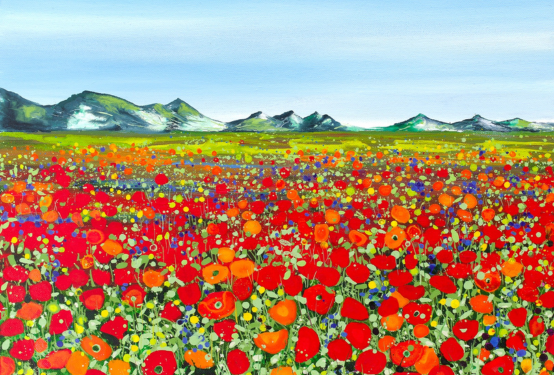 Becca Clegg’s work is anchored in the natural world, drawing inspiration from its textures and forms. Her contemporary paintings use vibrant acrylic paint and inks, to produce random and intentional marks, forming compositions of the natural environment such as the Chantry Woods, Guildford, views of coast and sea including St Ives, Cornwall, and expansive views of Italian Poppy fields. Other coast work includes Porlock, Exmoor and Cromer.